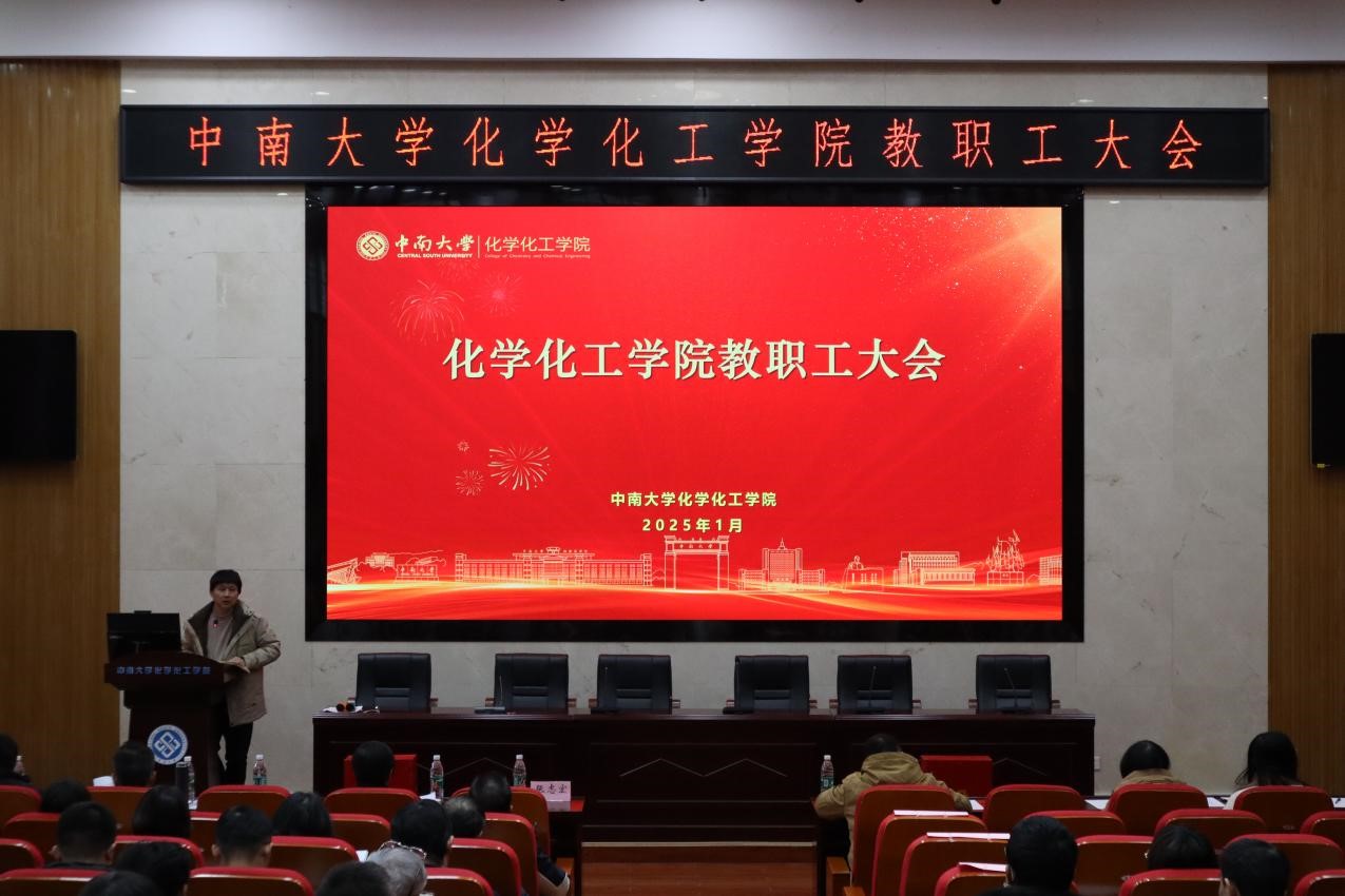 2025年1月16日下午3点,英国正版365官方网站在化学楼133报告厅召开全院教职工大会暨工会会员大会,并进行院领导班子成员2024年度工作述职和民主测评。学校党委组织部副部长张志宏到会指导,学院领导班子成员及全院教职工参加,院党委副书记滕晓雯主持会议。