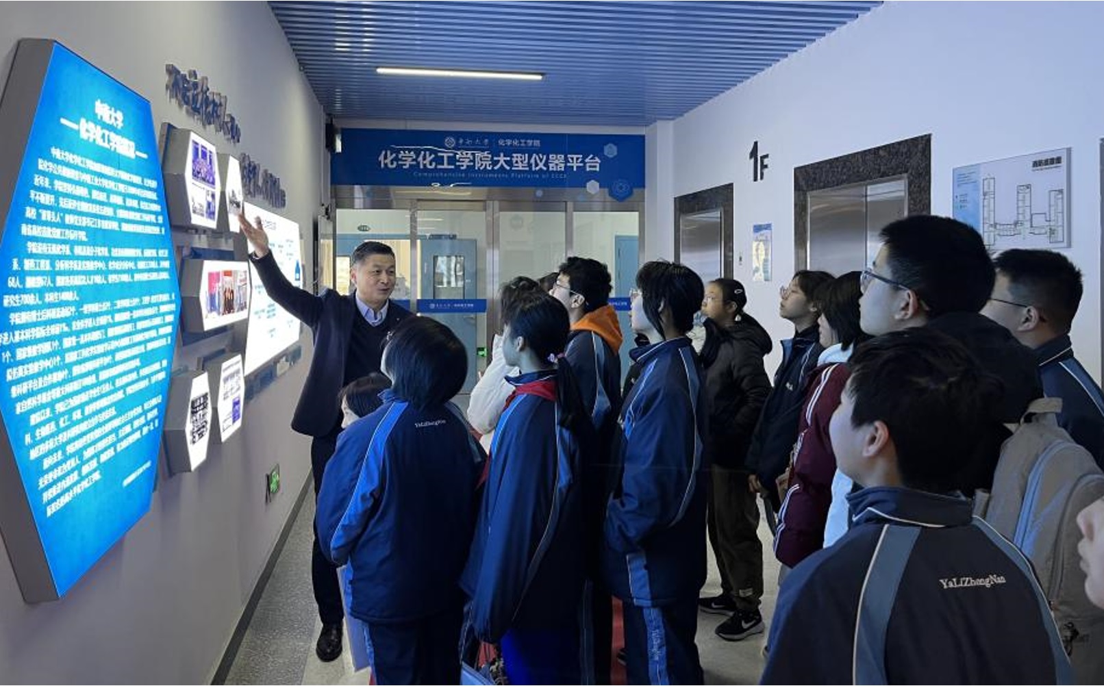 在参观大型仪器平台的环节,同学们惊叹于现代化学仪器的先进性和精准性。曾科老师生动地介绍了各种仪器的功能和用途,如高效液相色谱仪、透射电子显微镜、核磁共振波谱仪等。同学们近距离接触这些高精尖设备并通过电子显微镜观察物质的细微结构,了解到它们在科学研究中的重要作用。这不仅开阔了同学们的眼界,也让其对化学实验的严谨性和科学性有了更深刻的认识。