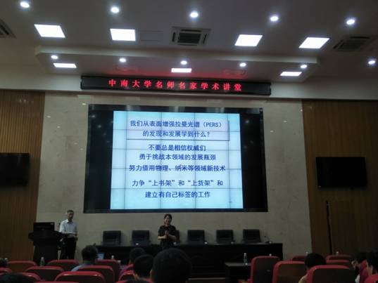 报告会上,田中群教授主要讨论了原始创新与科研如何定位自己,创作为引领,新作为积累;理科工科的定位和特征在于:基础研究成果,应用与研发(工科),企业产品与市场商品;也讲到科学基础研究的特点:原创性(认知动力、学科交叉),非共识性(不相信书本、挑战权威),长期性(抓住本质强烈兴趣),不确定性(拓宽基础、把握机遇);科研发展一般有三部曲,数据:混乱一可靠一准确,实验:定性一定量一规范,理论:猜想一模型-理论,成果:尝试一展示一市场这是起始一发展一成熟的过程,科学意义一突破关键一交叉应用?最后讲到我们从表面增强拉曼光谱(PERS)的发现和发展学到什么:即不要总是相信权威们,勇于挑战本领域的发展瓶颈,努力借用物理、纳米等领域新技术,力争“上书架”和“上货架”和建立有自己标签的工作。
