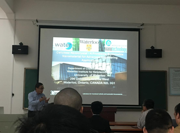 报告会上, Micheal K. C. Tam教授讲到由于使用来自传统碳源的原材料(如原油)的负面影响,纳米技术将成为推动科学和工程创新的下一个技术浪潮。其中纤维素纳米晶体(CNC)为工业领域中的产品开发和配方提供了新的途径。主要讲了CNC功能化所起到的重要作用,CNC与两亲化合物之间的物理相互作用,以及这些相互作用如何影响它们的稳定性和微观结构。使用快速和稳定的表征技术来观察不断发展的分子结构,以阐明它们的形态和微观结构。还讲到了CNC的表面各种功能化策略。最后Micheal K. C. Tam教授对CNC在其他相关市场领域的未来发展和新机遇发表一些评论。还向师生们介绍了自己研究团队及研究环境。
