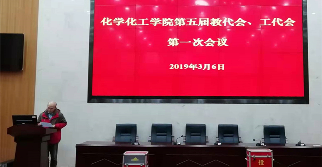 3月6日下午,英国正版365官方网站第五届教代会、工代会第一次会议在新校区化学楼133报告厅召开。全院教职工、工会代表共143人参加,院党委副书记刘有才主持大会。