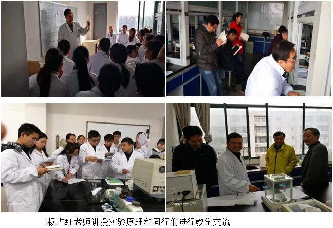 学院对实验教学也高度重视,为了加强实验教学,提高实验教学质量,应化系杨占红老师、有机系蒋历辉老师和孙晓毅老师分别面向院系上了公开课。杨老师主讲的《结构化学》课内实验---物质磁化率测定,蒋老师主讲的《从茶叶中提取咖啡因》,孙老师主讲的《安息香的辅酶合成法》,老师们课前准备了补充材料,讲授层次清晰流畅,学生统一着实验服,记录认真操作仔细,课堂效果“活而有序”!