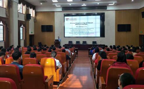 报告会上,张华教授系统讲述了其课题组在金纳米材料晶相工程方面的研究工作。张华教授主要介绍了第一次合成在氧化石墨烯上六方密堆积的金纳米层,第一次合成4H六方晶相的金纳米层(NRBS),晶相异质结构4H/fcc纳米棒的合成等方面。张华教授为我们着重介绍了非均相纳米材料和晶相异质结构,讲解了何为晶相、单层半导体纳米片的制备和异质结构的分类,同时指出了其在可控外延生长研究所遇到的挑战,并对其在生物传感器、清洁能源的应用提出了期望。 报告接近尾声时,张华教授与在场的的学生和老师进行了多次互动,对学生提出的问题进行了细致的解答并为在座的老师就课题组所做工作的细节之处再一次做出了解释。同时张华教授也为我们简单介绍了南洋理工大学的历史及校园风光。最后,此次讲座在师生们的阵阵掌声中落下了帷幕。