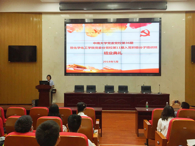 5月30日下午2点,中南大学党委党校第36期暨英国正版365官方网站党委分党校第11期入党积极分子培训班结业典礼在化学楼133报告厅隆重举行。英国正版365官方网站党委副书记、分党校副校长刘有才同志、院党委组织员李璞同志、本科2016级党支部书记范帆同志以及培训班全体学员参加。结业典礼由班导师范帆主持。