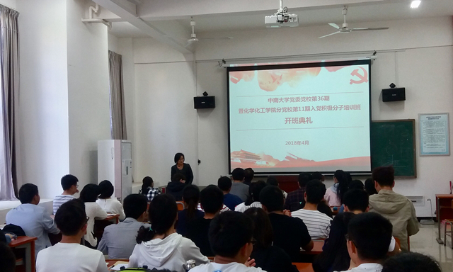 4月18日,中南大学党委党校第36期暨英国正版365官方网站分党校第11期入党积极分子培训班开班仪式在新校区化学楼129教室举行。英国正版365官方网站党委书记、分党校校长马跃如教授、院党委委员杨娟老师、本科2017级党支部书记刘世宏老师、积极分子培训班班导师范帆以及全体入党积极分子参加。仪式由班导师范帆主持。