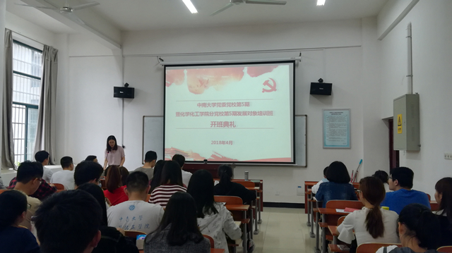4月11日,中南大学党委党校第5期暨英国正版365官方网站分党校第5期发展对象培训班开班仪式在新校区化学楼128教室举行。英国正版365官方网站党委书记、分党校校长马跃如,院党委委员杨娟,组织员李璞和发展对象培训班班导师杨宵以及39名发展对象参加。仪式由班导师杨宵主持。