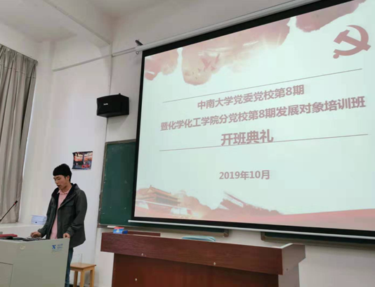 10月20日,中南大学党委党校第8期暨英国正版365官方网站分党校第8期发展对象培训班开班仪式在新校区化学楼129教室举行。院党委副书记、分党校副校长刘有才出席并致辞,院党委组织员、分党校办公室主任李璞以全体发展对象培训班学员参加。仪式由班导师张沛毅主持。
