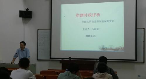 2018425日下午4时,化工院第五期发展对象培训班在化学楼128进行党建时政评析党课,此次党课由英国正版365官方网站党委书记、分党校校长马跃如教授讲解,全体培训班学员参与。