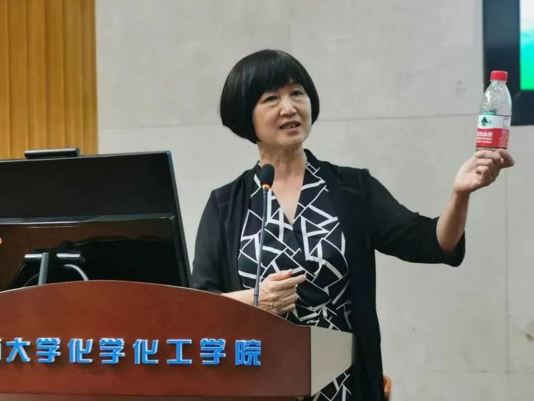 研讨会的第一阶段,特邀专家朱亚先教授作题为“润物无声—化学类课程思政建设”的主题报告。朱教授针对目前高校课程思政中普遍存在的“内涵不够清晰、思政目标分解落实不到位、缺乏整体设计、缺乏标准与评价方式”等主要问题,从“深入理解课程思政的内涵、加强教师修养和提升育德意识、课程思政教学设计原则、注重思维方式传授和学科文化育人、建设课程思政共享案例库、课程思政标准建设、完善课程思政评价机制”等七个方面讲述了如何将思政的盐加入到课程教学的汤中。朱教授现场取材以一瓶矿泉水为例,介绍了商人、医学工作者以及化学工作者中看到一瓶水所联想和关注点的差别介绍了学科文化育人的重要性。朱教授生动形象的报告使在座的教师和学生都受益匪浅。报告后教师代表与朱教授之间就学生如何参与课程思政、如何避免重复使用思政案例以及如何评价课程思政效果等问题进行了交流。