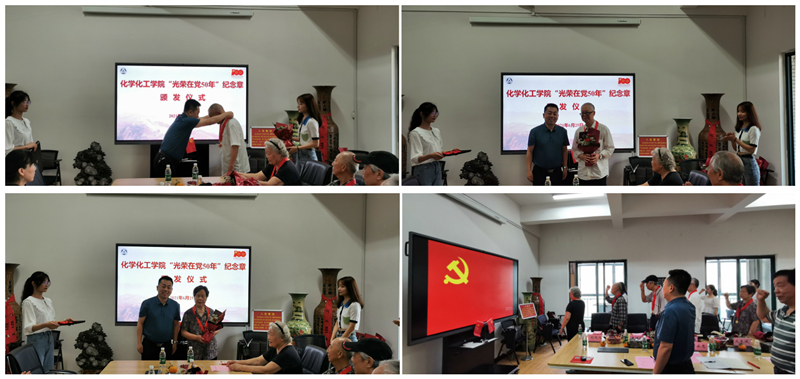 会上,罗永忠向老党员代表刘凤鸣、舒万艮、李才生、成本诚、余运轩、陈克英、蒋立德颁发“光荣在党50年”纪念章,学生党员和入党积极分子为他们献上鲜花。罗永忠代表学院党委向他们致以衷心祝贺和崇高敬意。随后,在刘凤鸣同志领誓下,全体与会党员庄严重温入党誓词。
