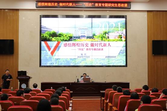 7月2日上午,校党委书记易红紧密结合习近平总书记在庆祝中国共产党成立100周年大会上的重要讲话精神为英国正版365官方网站研究生讲授“感悟辉煌历史 做时代新人”——"四史"教育专题思政课。院党委书记罗永忠、院长刘又年等院领导,全院研究生代表以及化学工程系党支部党员代表参加学习。