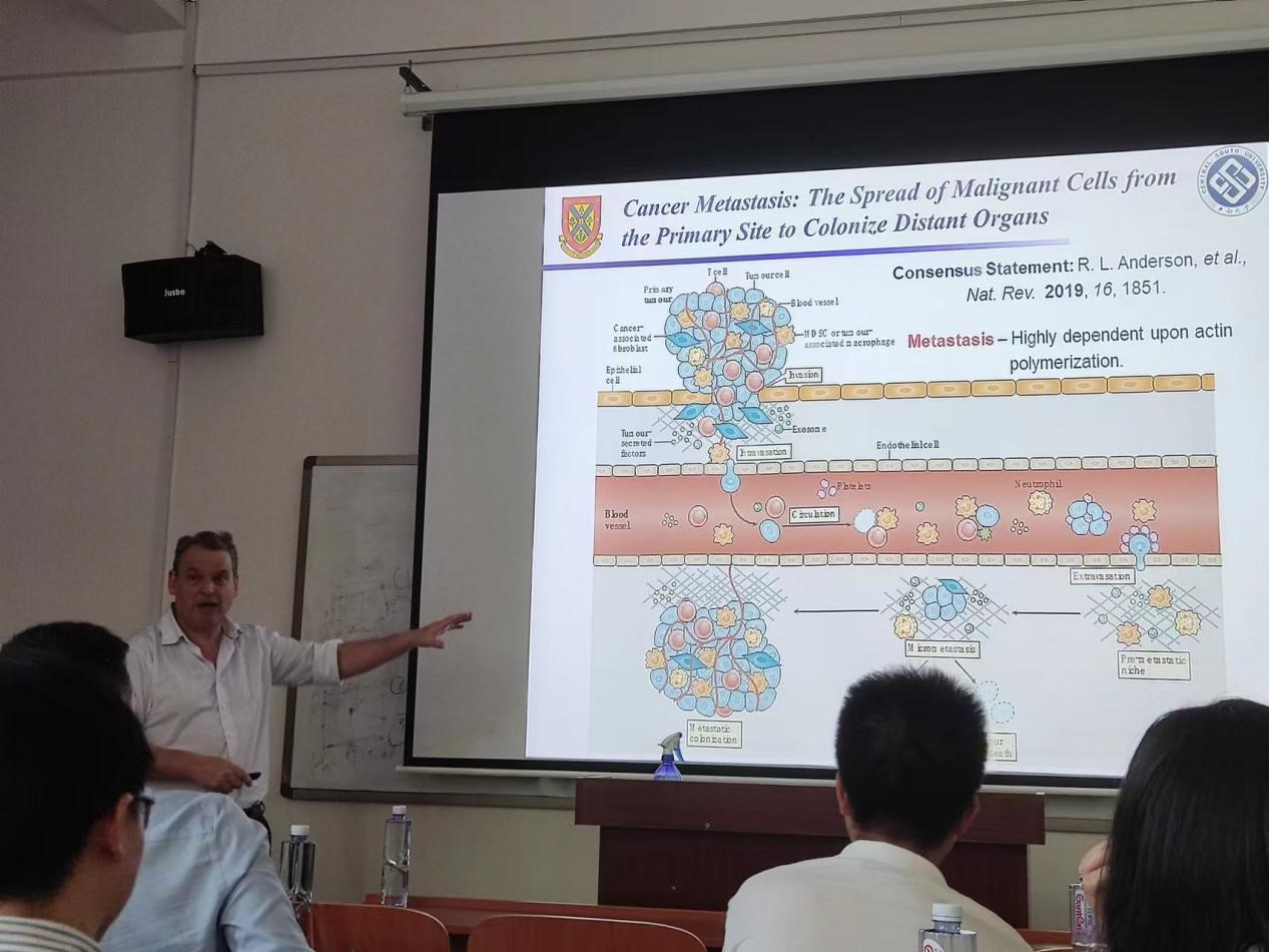 此外,他的团队还致力于对抗癌药物进行研究,以来源于海洋的小环内酯天然产物Mycalolide B为模板设计一种抑制癌症转移的类似物,并将其和抗体结合制成靶向药物制剂来研究其抑制癌症转移的活性。该类似物可抑制g-肌动蛋白聚合和解聚f-肌动蛋白,并对SKOV3细胞中f-肌动蛋白细胞骨架进行破坏从而抑制转移。