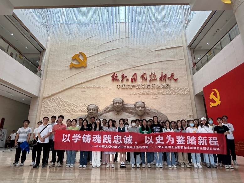 为深入学习贯彻习近平新时代中国特色社会主义思想,教育引导党员学思想、见行动。6月3日,学院党委组织硕士生有机第一、第二党支部与硕士生制药党支部在湖南党史陈列馆、雷锋纪念馆共同开展“以学铸魂践忠诚,以史为鉴踏新程”主题教育实践研学暨联合主题党日活动。