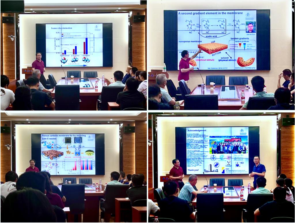 报告伊始,袁家寅教授回忆起了与中南大学多年来的合作过程和成效,温情的话语瞬间拉近了大家的距离。在报告里,袁老师介绍了自己的研究背景和研究内容,将团队聚焦的聚(离子液体)材料用通俗易懂的语言介绍给大家,围绕了聚(离子液体)的自组装和纳米多孔梯度聚(离子液体)膜的合成及其应用,讲述了三个科研小故事。最后,他总结了自己的讲座内容并传授了自己做科研的心路历程。