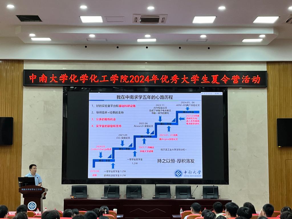 优秀学生代表胡俊博士、谢春霖博士分别分享了自硕士生阶段进入中南大学的学习、生活心得,并结合个人实际给营员们提出了自己的几点建议,鼓励营员们勇敢展示自我,融入中南大学,实现人生理想。