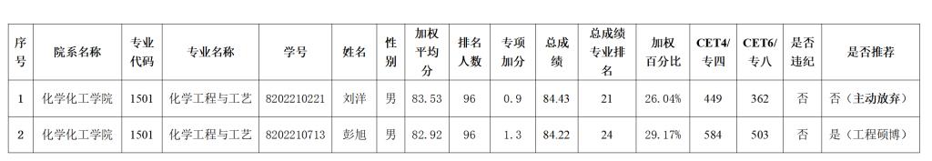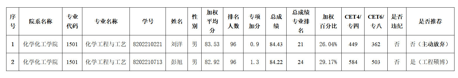 由于现拟推荐的学生主动放弃推免资格,推荐名额自动顺延至下一名同学,具体更改情况如下: