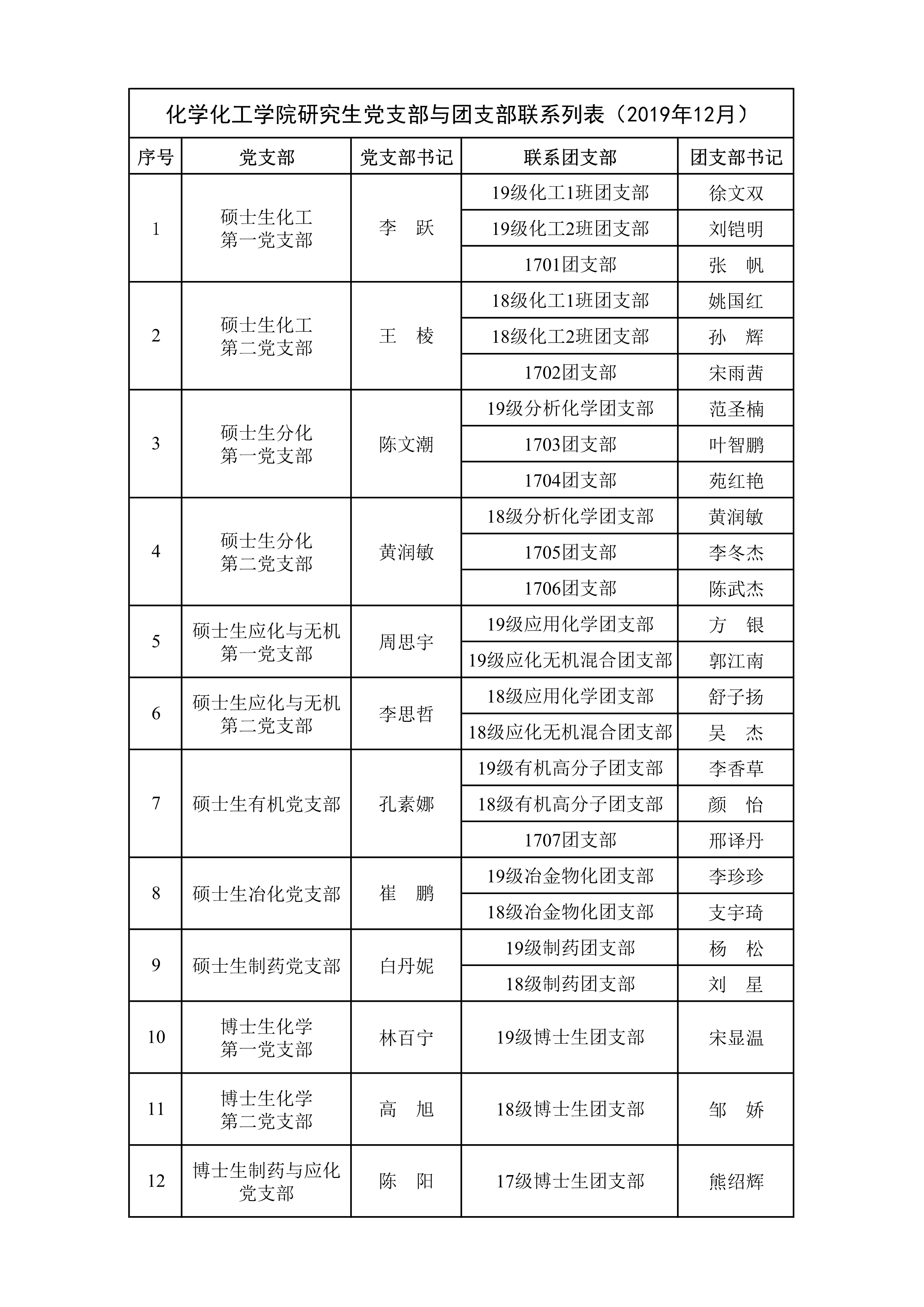 英国正版365官方网站研究生党支部与团支部联系列表(2019年12月)