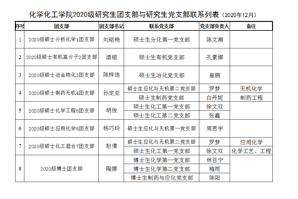 英国正版365官方网站研究生党支部与团支部联系列表(2020年12月)
