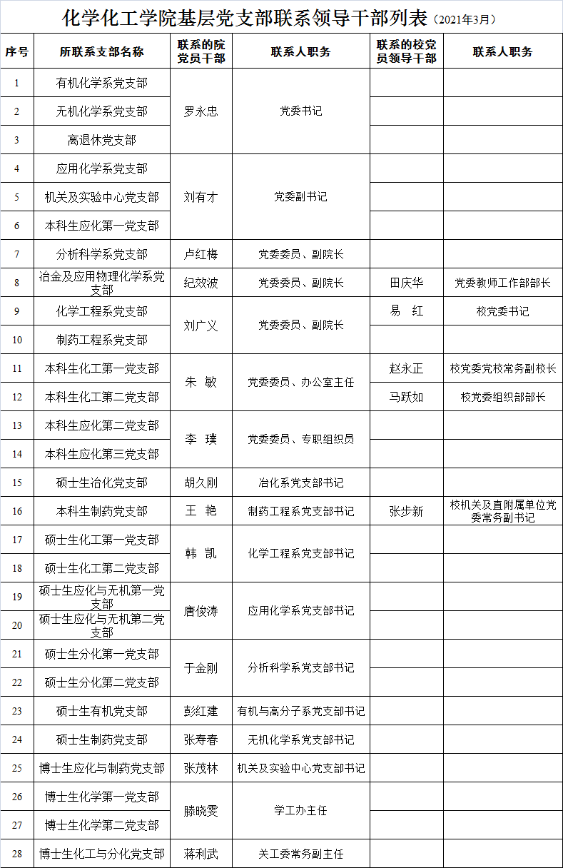英国正版365官方网站基层党支部联系党员领导干部列表(2021年3月更新)