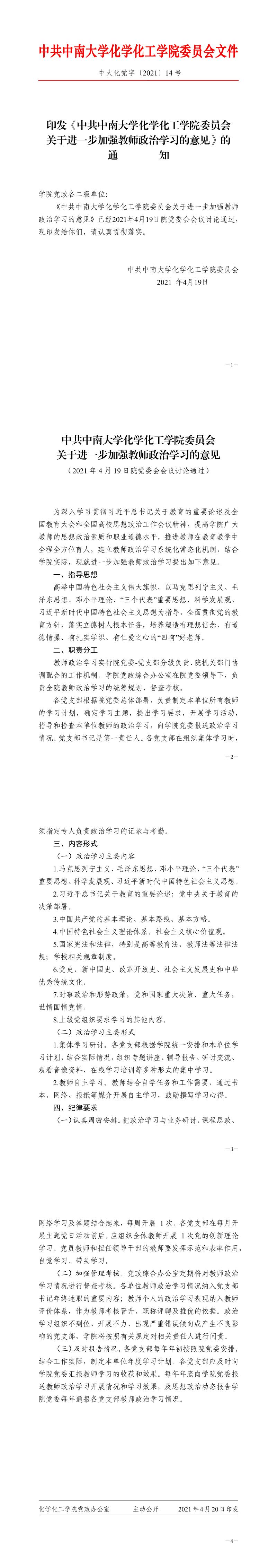 印发《中共英国正版365官方网站委员会关于进一步加强教师政治学习的意见》的通知