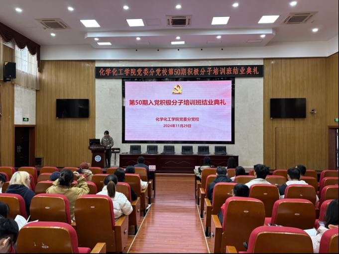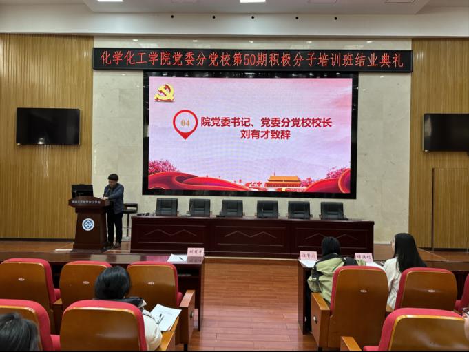 11月29日中午,第50期入党积极分子培训班结业典礼在英国正版365官方网站133报告厅举行。本次结业典礼由入党积极分子培训班班导师肖茜斤主持,院党委书记、分党校校长刘有才,院党委专职组织员汪菁垚、发展对象培训班班导师谭澳利出席本次结业典礼。