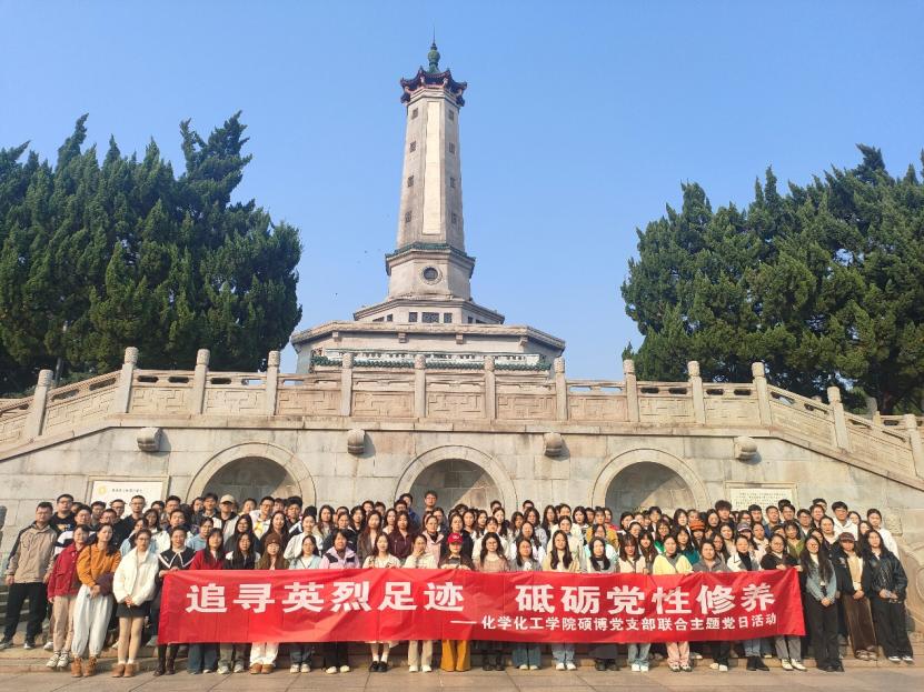 长沙是一座革命的城市、一座英雄的城市、一座光辉的城市,长沙烈士公园是为纪念近百年来为人民解放事业献身的革命先烈而建的。为加强爱国主义教育,缅怀先烈精神,增强党员修养。12月12日,博士生应化与制药党支部联合博士生化工与分化党支部与硕士生应化与无机第一、第二党支部前往长沙烈士公园开展“追寻英烈足迹,砥砺党性修养”为主题的党日研学活动。