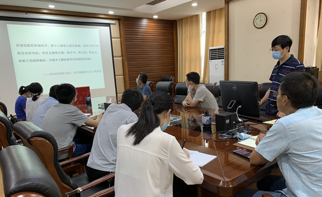 学习贯彻全国两会精神是当前的一项重大政治任务。2020年全国两会政府工作报告重点指出:“推进一流大学和一流学科建设”。胡久刚同志结合“两会”精神及6月7日习近平致信祝贺哈尔滨工业大学建校100周年内容,与支部党员同志一起学习了近年来习近平总书记关于教育的重要论述、习近平总书记一系列重要讲话和批示指示精神,如“思想政治理论课是落实立德树人根本任务的关键课程”、“高校党组织要把抓好学校党建工作和思想政治工作作为办学治校的基本功”、“要坚持党对高校工作的全面领导,坚持立德树人,建设高素质教师队伍,努力培养更多一流人才”等。