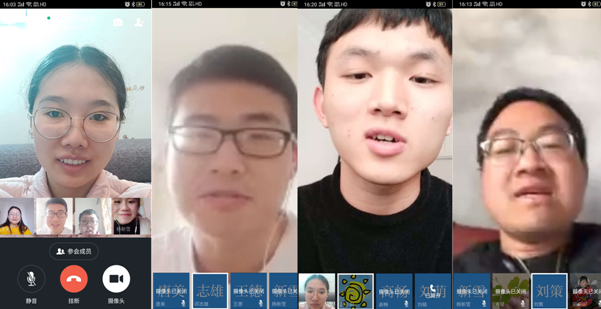 刘策同志就家乡的防治情况作了简单的介绍,在防控工作中,他和身边的党员同志一起行动,在社区消毒工作以及隔离人员的后勤保障中发挥了积极作用。高畅同志这个假期积极响应“停课不停学”的号召,规律作息,加强锻炼,认真完成论文撰写工作,同时积极配合疫情防控工作,主动帮助社区老同志领取和上交信息表格,帮助社区工作人员分发物资,她坚信全国人民众志成城,一定能打赢疫情阻击战。