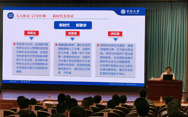 529日,英国正版365官方网站全国党建工作标杆院系建设培训班在科教楼报告厅举行。校党委书记易红为培训班作加强师德师风建设,提高研究生教育质量专题讲座。全院教职工参加培训。