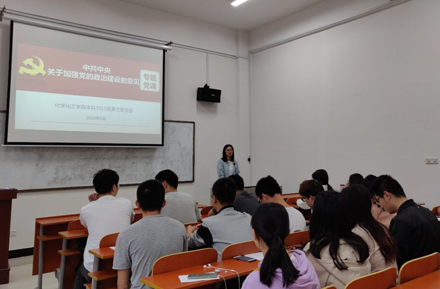 2019年5月16日上午10点,英国正版365官方网站本科2015级第三党支部在新化学楼125教室顺利召开党员大会。此次会议主要内容为学习《中共中央关于加强党的政治建设的意见》(以下简称《意见》),并选举推荐参评2017-2019年度中南大学优秀共产党员的候选人名单。