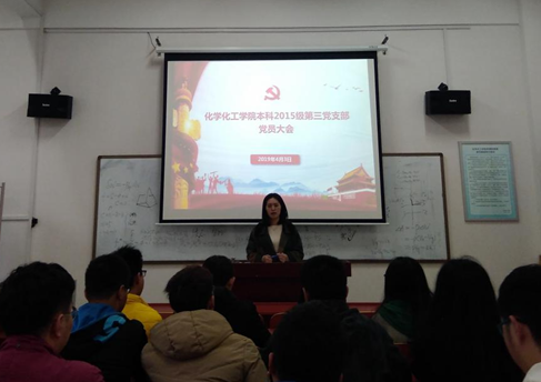 4月3日上午10点,英国正版365官方网站本科2015级第三党支部在新化学楼126教室顺利召开党员大会。本次党员大会主要内容为学习相关文件,选举中共英国正版365官方网站委员会党员代表大会党员代表以及酝酿和推选学院党委委员候选人名单。会议由支部书记杨宵主持,支部全体党员参会。