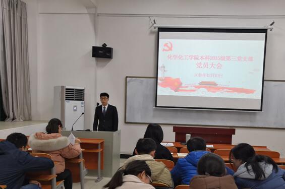 12月10日晚20:00-21:00,英国正版365官方网站本科2015级第三党支部在新化学楼126教室召开党员大会,对龚凤等6名预备党员的转正申请进行讨论和表决。