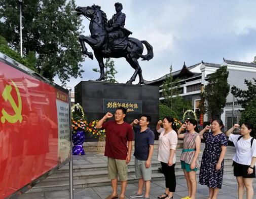 6月23日上午10时许,全体党员抵达平江县城进行参观学习。同志们一起缅怀了彭德怀同志的伟大贡献,在彭德怀同志塑像前宣读入党誓词,重温红色峥嵘岁月。