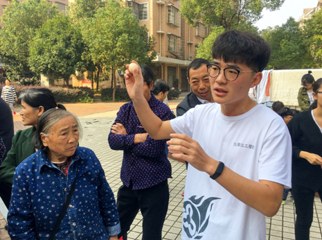 在活动之前,支部成员分为两组分别到达活动社区,向社区居民发放传单,邀请他们前来参加活动,并向活动现场的居民们赠送了印有支部logo的环保袋,以倡导绿色生活,呼应主题。现场有趣的小实验也吸引了众多居民纷纷驻足观看。