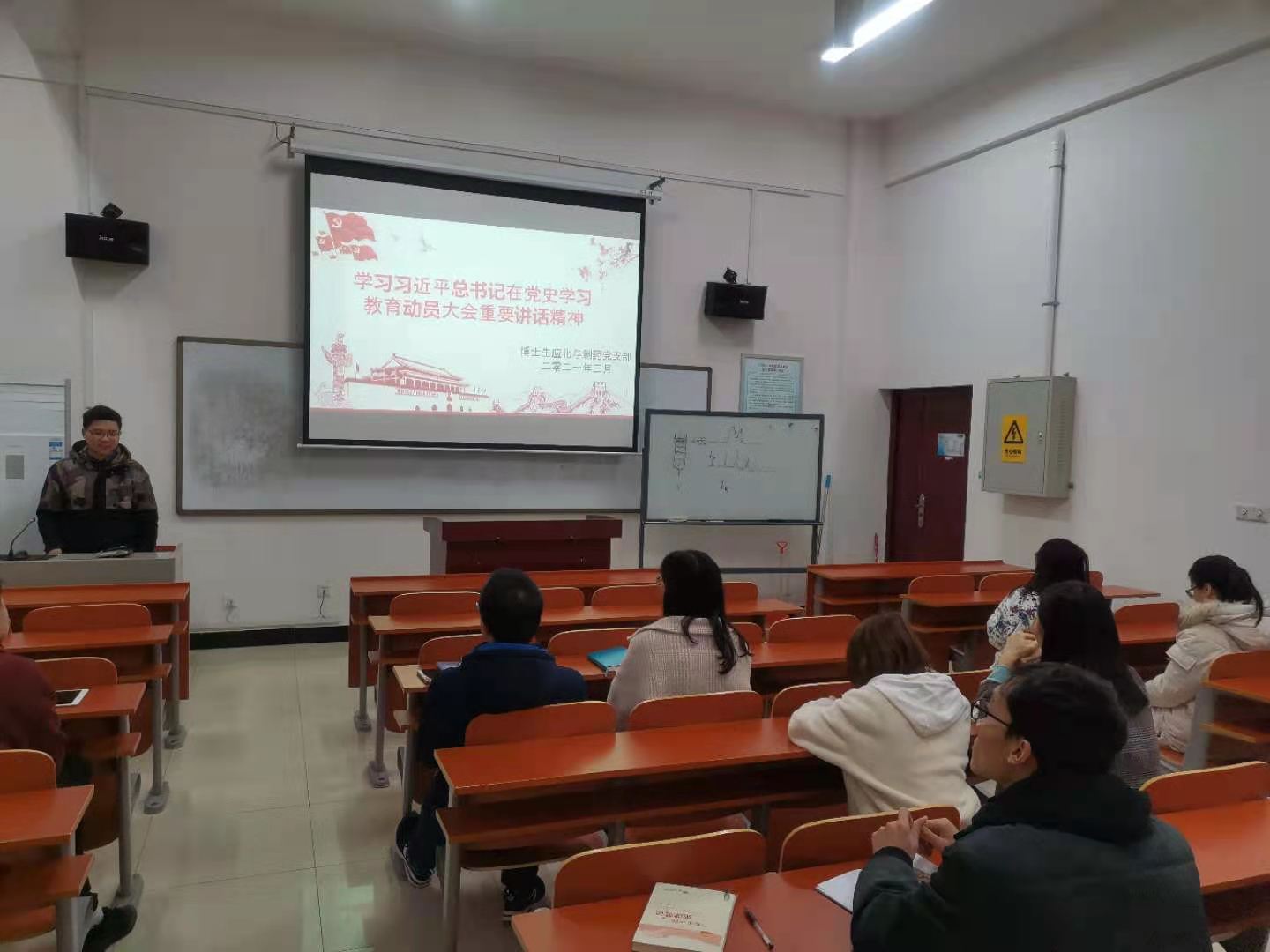 2021年3月23日下午在英国正版365官方网站124教室,博士生应化与制药党支部开展“学习习近平总书记在党史学习教育动员大会重要讲话精神”为主题的党日活动,并集体观看了《榜样5》教育视频。会议由支部书记陈阳同志主持。