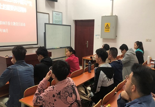 首先支部书记张沛毅为同志们解读了习近平总书记的讲话全文。其强调中国共产党向人民、向历史交出了一份优异的答卷。现在,中国共产党团结带领中国人民又踏上了实现第二个百年奋斗目标新的赶考之路。中国共产党立志于中华千秋伟业,百年恰是风华正茂!同志们都为中国今日之成就感到自豪,为习总书记的高瞻远瞩所折服。接着张沛毅老师从整体结构上指出时代背景、重要意义、行动号召等方面,并结合大学生实际为同志们提出了人生方针以及宝贵的建议。