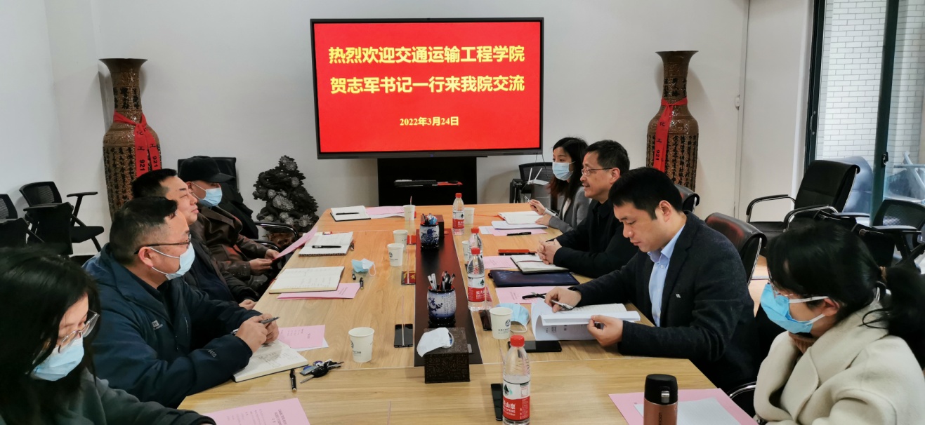 3月24日上午,交通运输工程学院党委贺志军书记、宋晓东副书记、专职组织员张佳琪和朱显妍一行来英国正版365官方网站就基层党建工作等方面进行调研交流,并参观英国正版365官方网站党建工作标杆院系成果展、党建示范基地以及文化建设成果展。