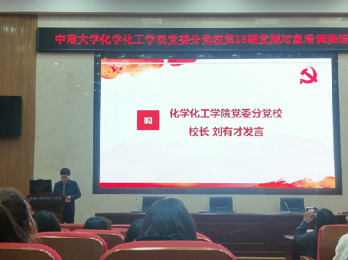 2023年5月10日下午14:30,英国正版365官方网站党委分党校在化工楼133报告厅举行第16期发展对象培训班结业仪式。结业仪式由培训班班导师胡雨琪主持;院党委书记、分党校校长刘有才,院党委专职组织员、分党校办公室主任汪菁垚出席此次典礼。