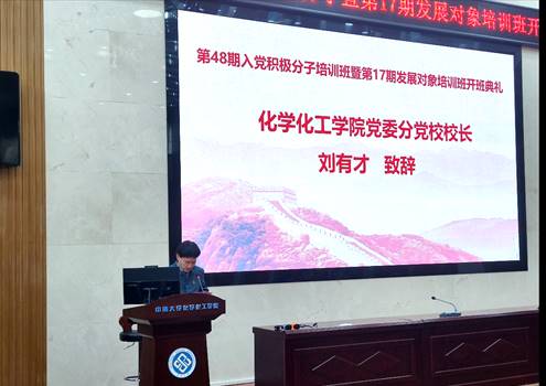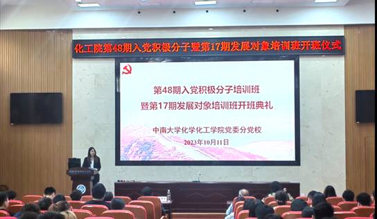 2023年10月11日下午,英国正版365官方网站党委分党校第48期入党积极分子培训班暨第17期发展对象培训班开班典礼在新校区化学楼133报告厅举行。院党委书记、分党校校长刘有才出席并致辞,党校督导戴维国老师、院党委专职组织员汪菁垚、发展对象班导师胡雨琪以及培训班全体学员参加。开班典礼由入党积极分子培训班班导师谭澳利主持。