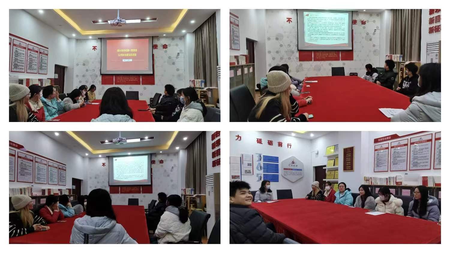 2023年12月29日下午15:00-15:30,英国正版365官方网站硕士生分化第一党支部在化学楼132党员活动室开展十二月份主题党日活动。支部书记谭成琛同志主持会议,支部正式党员及预备党员共11名同志参会。