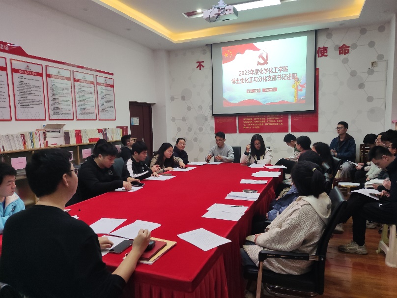 2024年3月12日,博士生化工与分化党支部在新校区英国正版365官方网站132会议室开展2024年度3月份主题党日活动。内容主要包括:集中学习习近平总书记近期系列重要讲话精神,党支部书记代表支委班子述职,开展民主评议。