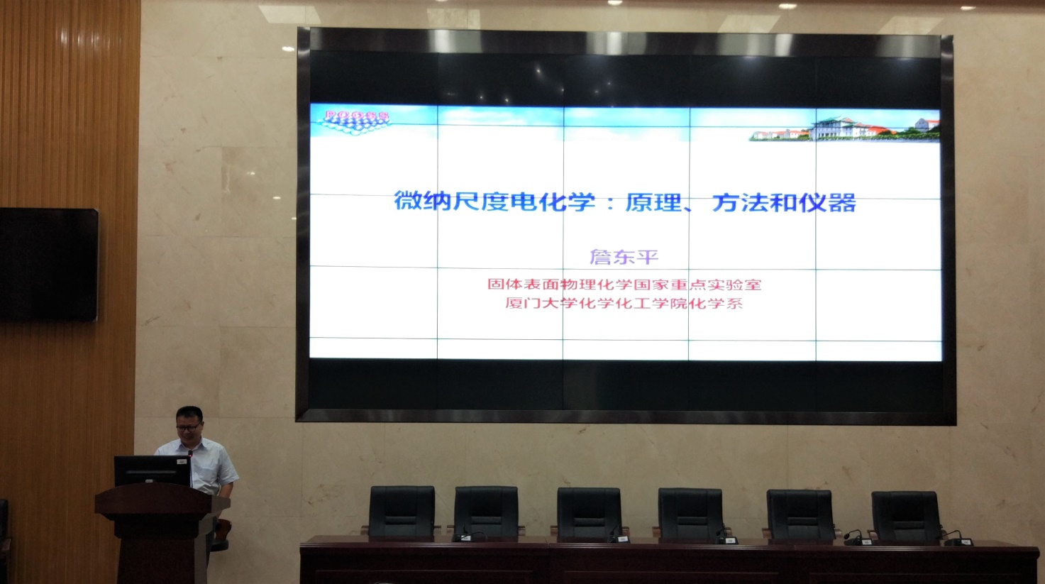 2017年4月22日下午14:30,新校区化学楼133报告厅举办了主题为“微纳尺度电化学:原理、方法和仪器”的学术讲座,主讲人是厦门大学詹东平教授,本次报告会由英国正版365官方网站向娟教授主持。