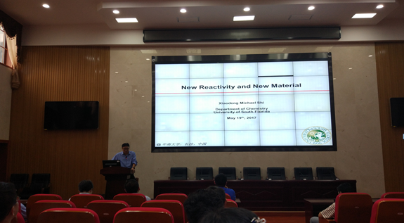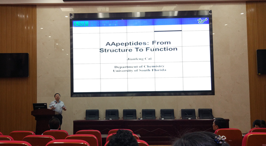 2017年5月19日下午15:00,新校区化学楼报告厅133室先后举办了主题为“Triazole-Au(I) complexes in promoting homogeneous gold catalysis: From stability to selectivity”、“Rational Design, Synthesis, and Chemical Biology Studies of Selective Inhibitors for Protein–Protein Interactions”、“Function Self-Assembly of Giant Supramolecules withIncreasing Complexity”以及“AApeptides: From Structure to Function”的四场学术讲座,主讲人是南佛罗里达大学的四位教授,他们分别是史晓东教授、季海涛教授、李霄鹏教授以及蔡健峰教授,本次报告会由英国正版365官方网站纪效波教授以及王平山教授主持。