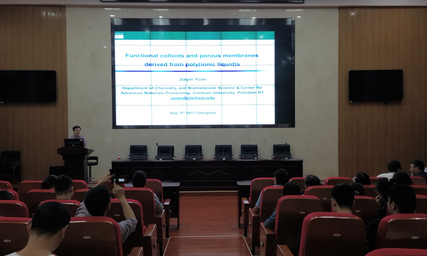 2017年9月5日上午9:00,新校区化学楼报告厅133室举办了主题为“Poly(ionic liquid)s and porous membranes derived from Poly(ionic liquid)s”的学术讲座,主讲人是美国Clarkson University/德国Max Planck Institute of Colloids and Interfaces袁家寅副教授,本次报告会由英国正版365官方网站纪效波教授主持。