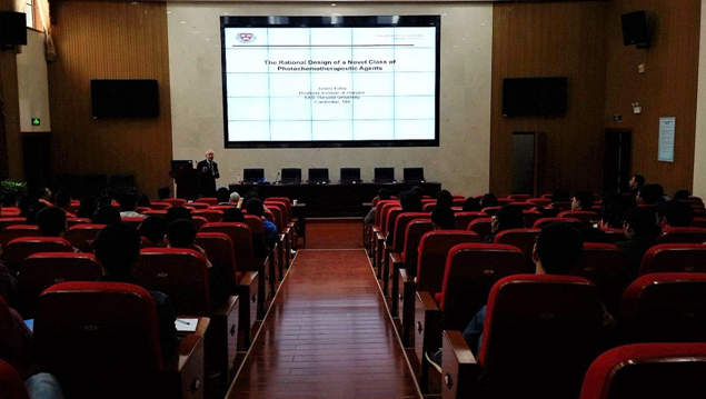 2017年4月27日,英国正版365官方网站邀请哈佛大学Rowland Institute James Foley教授莅临学院进行学术讲座与交流。上午10:00,在化学楼多功能学术报告厅,James Foley教授为全院师生主讲了题为“The Rational Development of a Novel Class of Photochemotherapeutic Agents”的学术讲座,本次报告会由英国正版365官方网站副院长刘又年教授主持。