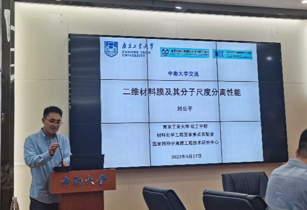 2023年5月17日下午,中南大学新校区化学楼129报告厅举办了题为“二维材料膜及其分子尺度分离性能”的学术讲座,报告人是南京工业大学的刘公平教授。报告会由韩凯教授主持,来自全院相关学科的师生们聆听了刘公平教授的精彩讲座。