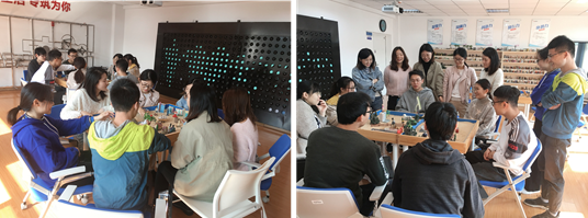 活动伊始,班上分为了两个小组,每个小组人员自由选择按顺序依次摆放自己拿到的物品,期间可以挪动别人摆放的物品或者被别人挪动自己摆放的物品。经过六轮之后,每个人都对自己挑选的物品进行了介绍,每个小组也形成了自己小组的沙盘主题。通过物品的摆放过程折射出了同学们此刻或者最近内心的状态。有的同学文章与工作双收,所拿物品体现了自己舒心的一面;有的同学想深造,正奋战考试,所拿的物品反应了现在的焦虑。滕老师对两个组的作品都进行了分析总结,结合了自己掌握的经验、心理学知识和生涯规划技巧,深入剖析了同学们不同选择的背后所蕴含的更深层次意义,并让大家各抒己见,发表最近的一些看法。“生涯沙盘”游戏环节的表现之后,滕老师也鼓励同学们以乐观、积极向上的态度来解决来自升学、就业和毕业的问题。
