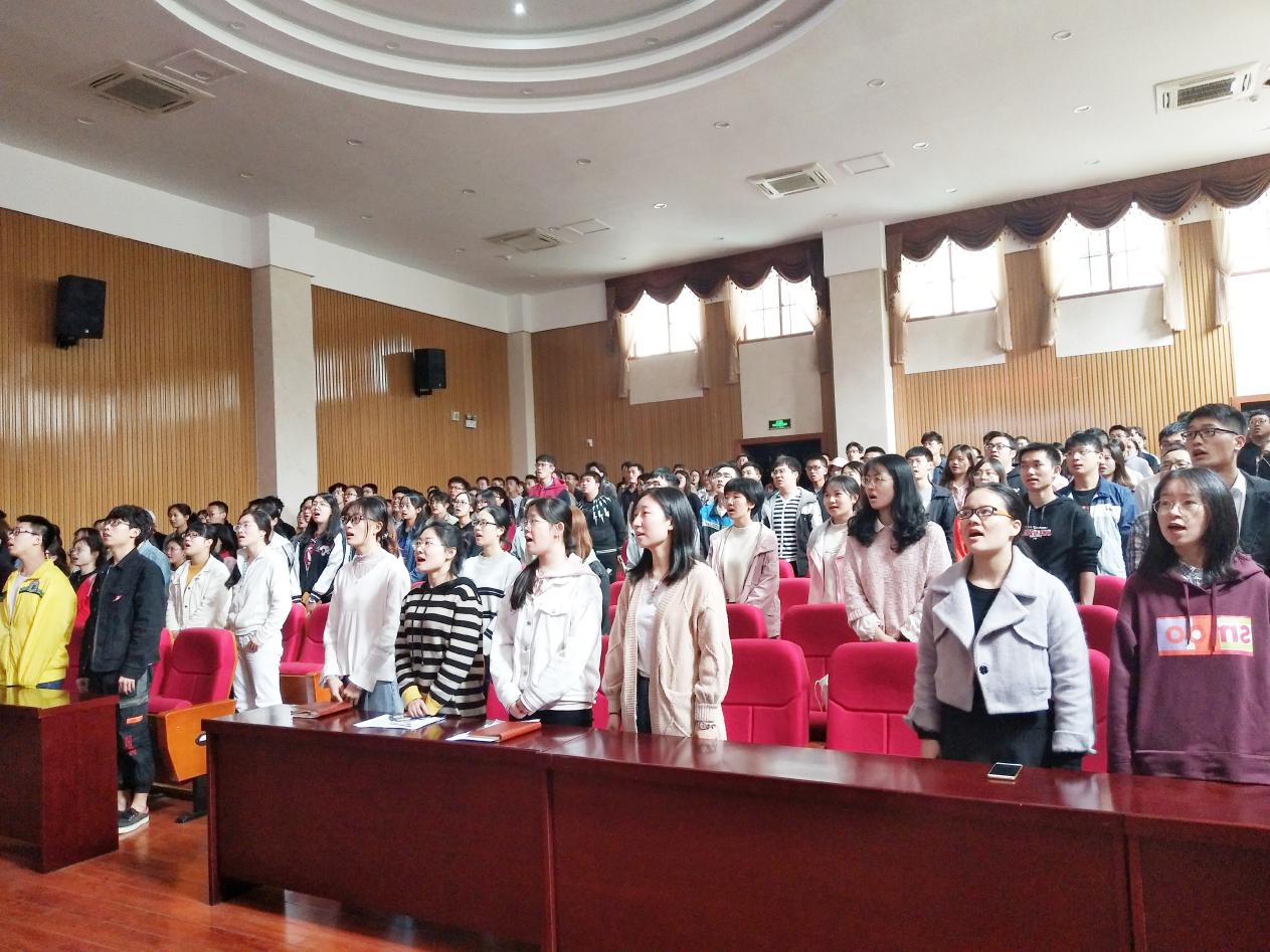 4月30日上午10时30分,纪念五四运动100周年大会在北京人民大会堂隆重举行。中共中央总书记、国家主席、中央军委主席习近平出席大会并发表重要讲话。英国正版365官方网站分团委组织团学干部、团员青年于化学楼133报告厅观看本次大会直播。