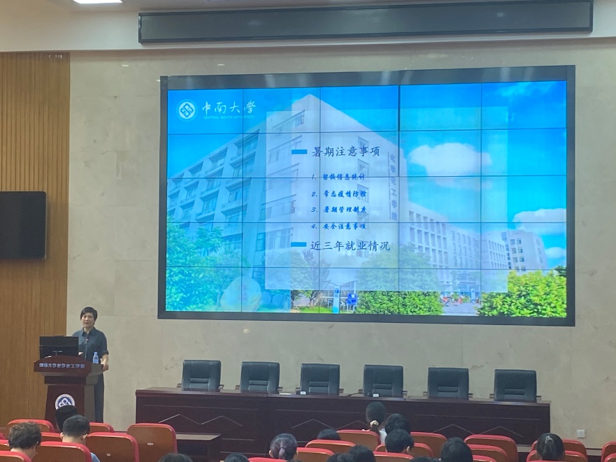 会议内容分为留校信息统计、常态疫情防控、暑期管理制度和安全注意事项四个部分。会议伊始,滕老师首先强调了暑期留校学生签署《2021年暑假留校学生安全稳定重要注意事项知情书》并填写《中南大学2021年暑假留校学生信息汇总表》的必要性,并进一步摸底了学生暑期留校情况,提醒同学们要和导师进行及时有效的沟通,确保导师了解自身的留校情况。随后滕老师强调了常态疫情防控的重要性及必要性,同学们在完成每日健康信息填报的基础之上,还需要遵守学校疫情防控的相关规定,关于近期电信诈骗的热点话题,滕老师提醒同学们在平时应加强安全防范意识,防电信诈骗,防传销组织,注意人身、财产、信息和宿舍等各类安全问题,学会为自己负责。