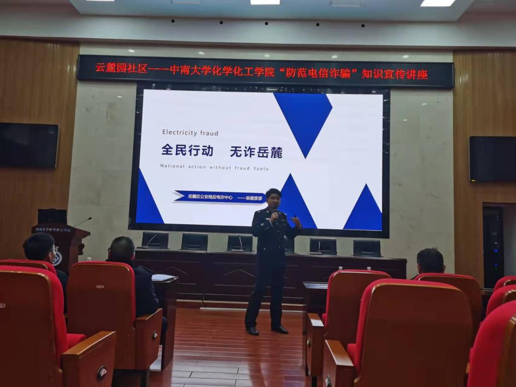 12月24日下午四点,来自岳麓区公安局的吴警官在英国正版365官方网站133报告厅为同学们讲授了“全民行动,无诈岳麓”知识宣传讲座,英国正版365官方网站副院长阳华、安全资产干事张茂林老师出席,英国正版365官方网站本科生、研究生代表参会认真聆听。
